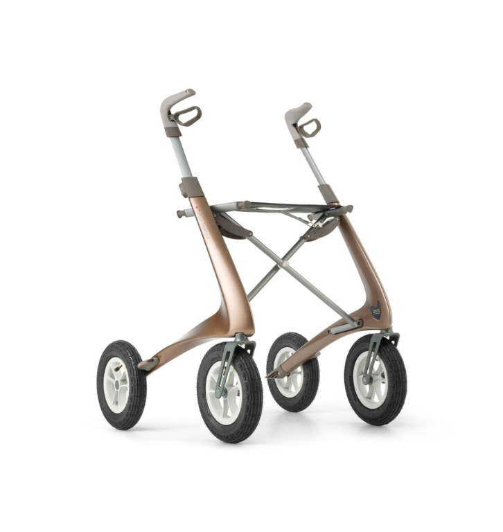 Um companheiro para exploracoes e aventuras, estrutura em fibra de carbono, aluminio aeronautico resistente e alcas semi-macias tipo borracha para boa aderencia. Andador todo-terreno com pneus pneumaticos ultraduraveis ??e suspensao excelente; Garfos dianteiros rigidos e rolamentos selados que suportam qualquer clima e terreno; Quadro de fibra de carbono - 5x mais forte que o aco; Resistente e leve, com apenas 6,7 kg - para facil elevacao no seu veiculo; Dobravel e com assento embutido; Vem totalmente montado e pronto para explorar.