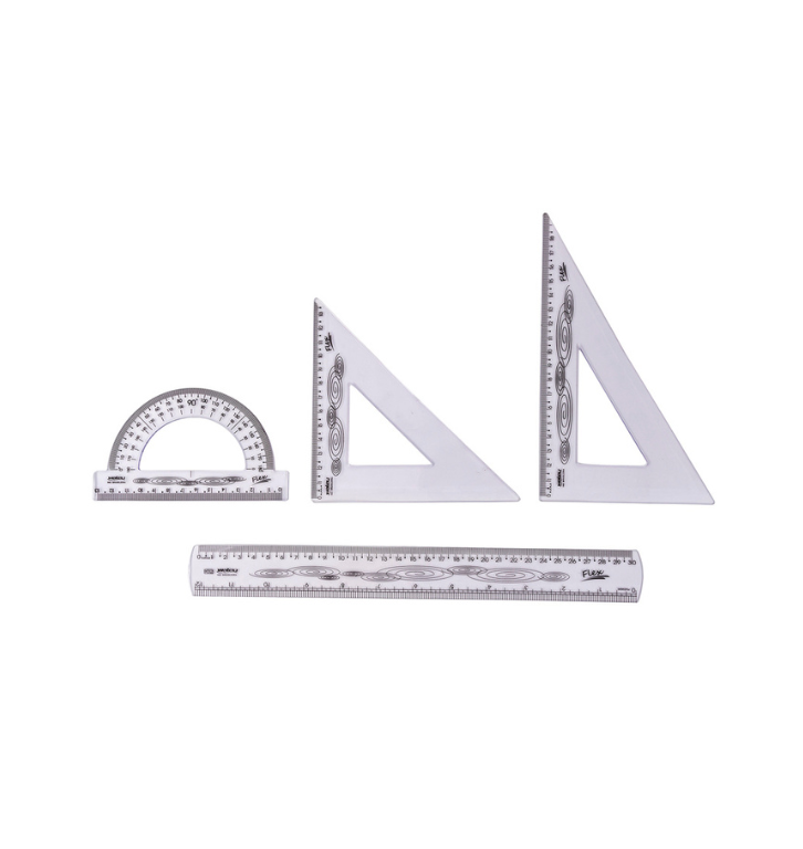 O Kit Flexivel Maxcril auxilia no tracado, conferencia de documentos e na realizacao de desenhos. E resistente e possui marcacoes em cm e mm. Devido a sua versatilidade pode ser guardado ate mesmo dobrado. Excelente acabamento oferece mais durabilidade e conta com a impressao tampografica que permite que as medidas nao desbotem ou desgastem com o tempo de manuseio. O kit e composto por: 1 regua de 30cm, 1 transferidor de 180 graus, 1 esquadro de 45 graus e 1 esquadro de 60 graus.
