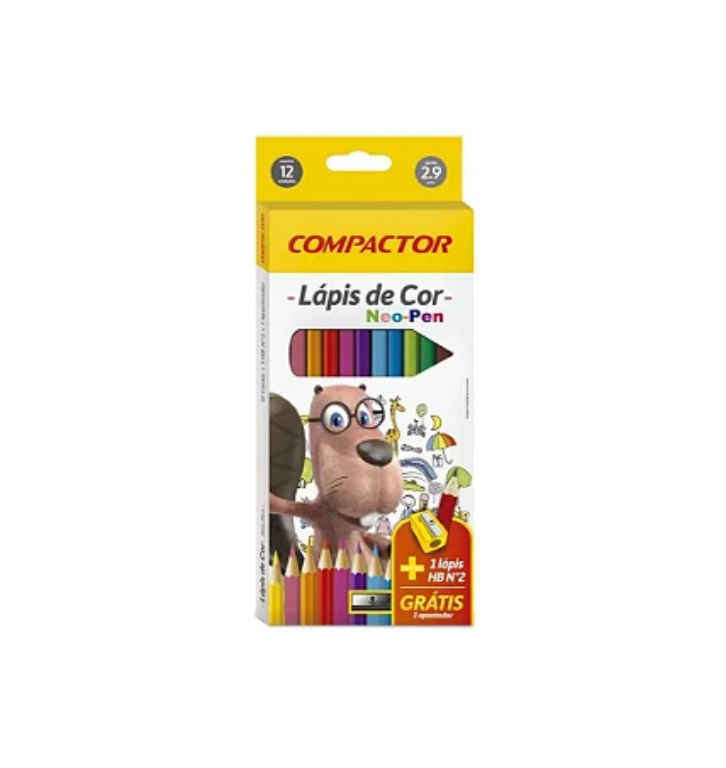 Lapis de cor Compactor 12 cores neo-pen vem com apontador.