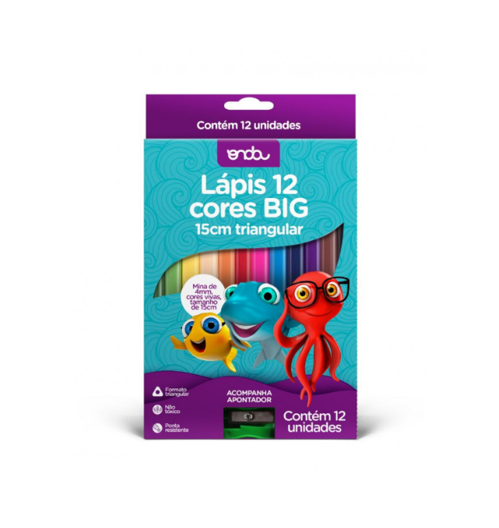 O Lapis de Cor 12 Cores Big 15cm Triangular com Apontador oferece um mundo de possibilidades artisticas. Com suas 12 cores vibrantes, este lapis e uma fonte inesgotavel de inspiracao. Seu formato triangular com um diametro de 10mm e um comprimento de 15cm torna-o extremamente ergonomico, estimulando o desenvolvimento psicomotor das criancas e proporcionando uma pegada confortavel durante o uso. Alem disso, este conjunto inclui um apontador especial projetado para manter a ponta do lapis sempre afiada e pronta para criar linhas nitidas e detalhes precisos em suas ilustracoes.