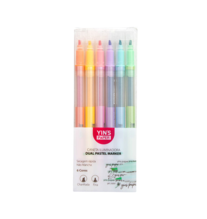 O material escolar vai virar diversao com a linha canetas iluminadoras Yin's Paper. Com modelos fofos e em formatos variados, todos vao se encantar. Contem 6 cores.