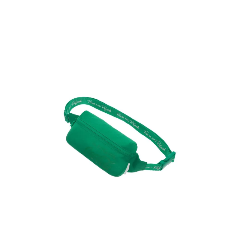 Pochete confeccionada em poliester, painel frontal com logo impresso em silk, bolso nos paineis frontal e traseiro, forro estampado personalizado, faixa ajustavel em fita de gorgorao com impressao em silk e fivela plastica e etiqueta emborrachada costurada na lateral.