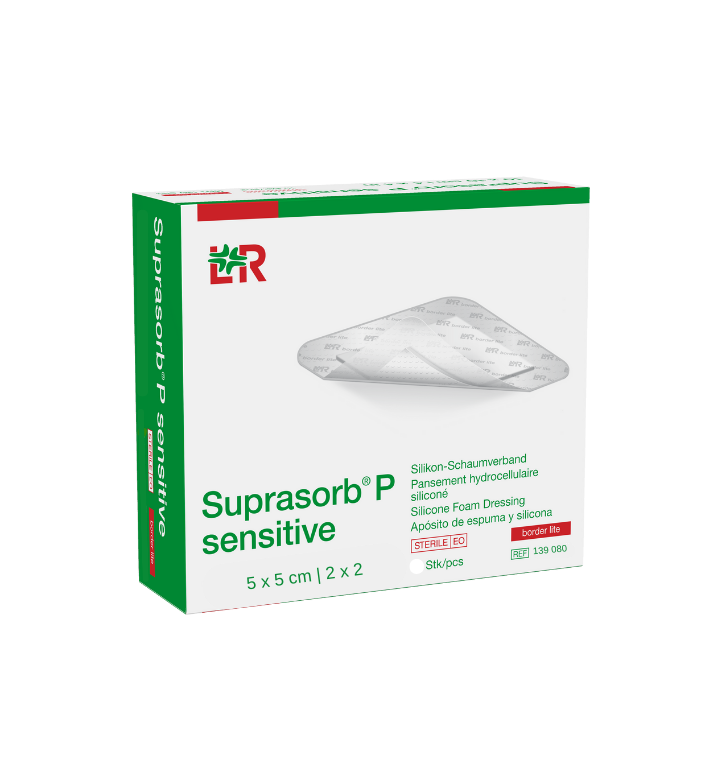 Curativo de Espuma com Silicone. O curativo de espuma de silicone Suprasorb P Sensitive e feito de uma camada de silicone para contato com a ferida, uma espuma de PU absorvente, uma camada de tecido nao tecido, um nucleo superabsorvente border, e um suporte protetor. Indicacao: Prevencao de Lesao por Pressao; Ulceras de perna e nos pes; Feridas traumaticas; Feridas pos-operatorias; Areas doadoras de enxerto; Abrasoes; Queimadura (1 e 2 grau). A espuma de silicone Suprasorb P Sensitive possui multiplas camadas, sendo uma delas, a camada de poliuretano que oferece acolchoamento, prevenindo as lesoes por pressao. Alem disso, tem alta capacidade de absorcao, sendo capaz de gerenciar a umidade no leito da ferida. Possui excelente capacidade de se conformar, mesmo em areas dificeis do corpo. Possui aderencia eficaz e suave, sendo atraumatica a sua remocao. E impermeavel a fluidos e bacterias, mas permite a troca gasosa entre a pele/ferida e o meio externo. BORDER LITE: 5 camadas, para o tratamento de feridas em areas dificeis. Produto unitario.